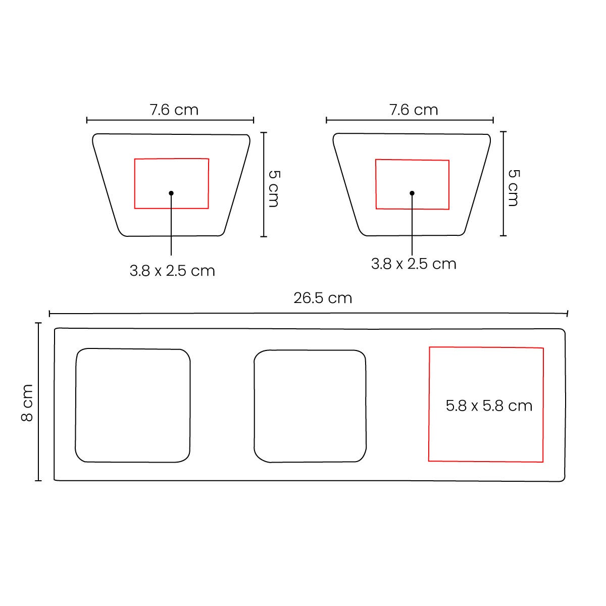 Área: 5.8 x 5.8 cm Base / 3.8 x 2.5 cm Bowl