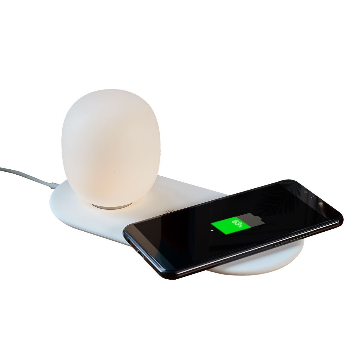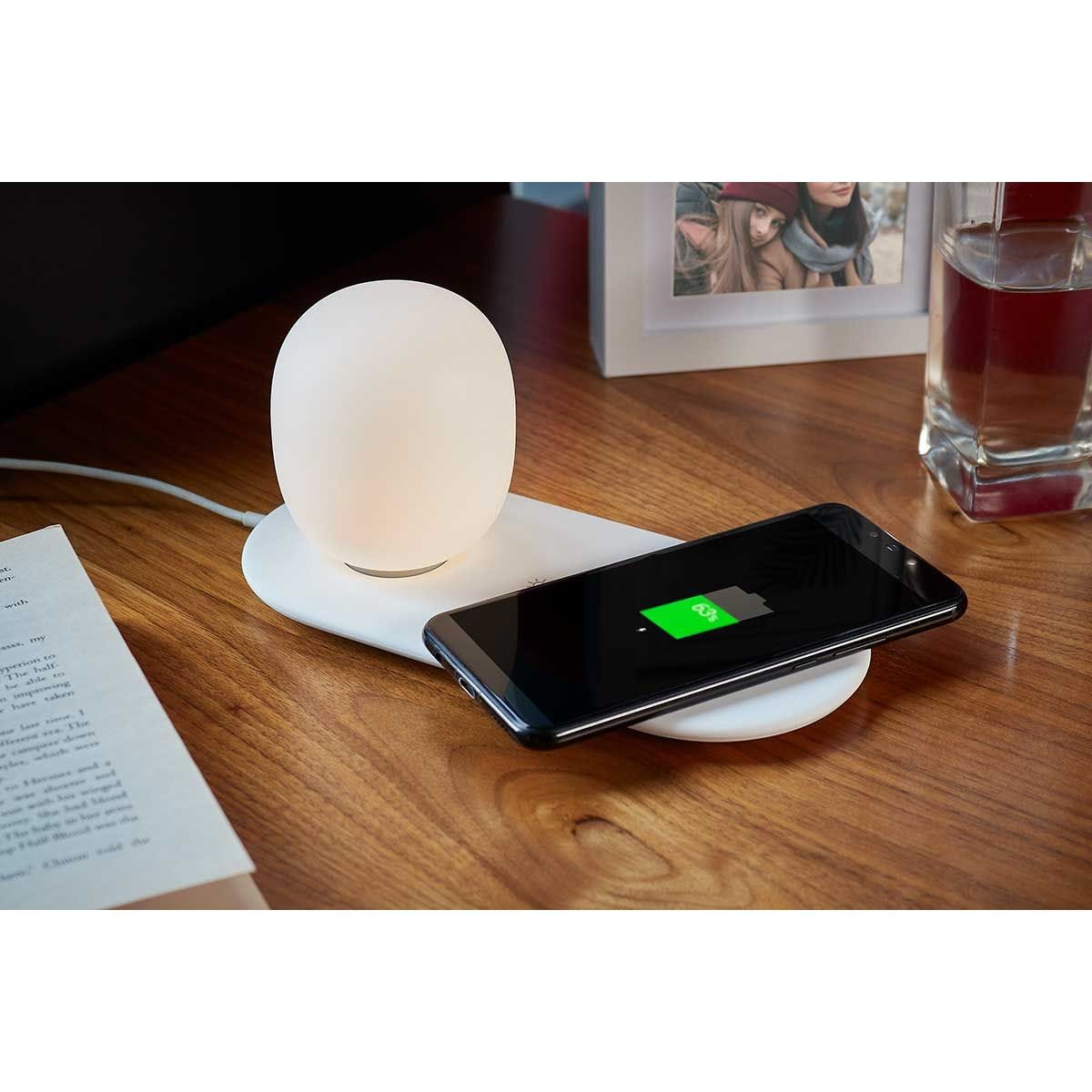 Cargador inalámbrico para smartphone con lámpara de escritorio. Incluye cable cargador. Compatible con la mayoría de dispositivos comerciales que cuenten con tecnología de carga inalámbrica.