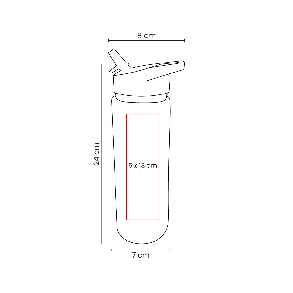 Pared sencilla de plástico. Sistema de rosca que permite abrir y cerrar la tapa. Incluye asa con un agarre cómodo y suave al tacto, una boquilla abatible para hidratarse y un popote desmontable para facilitar la limpieza.