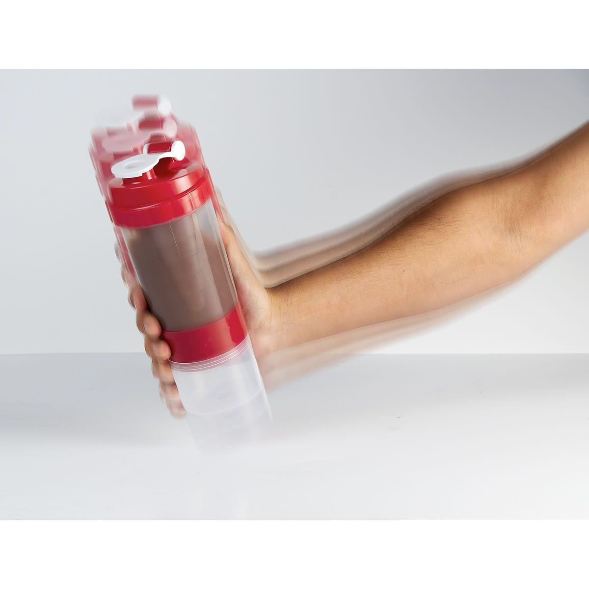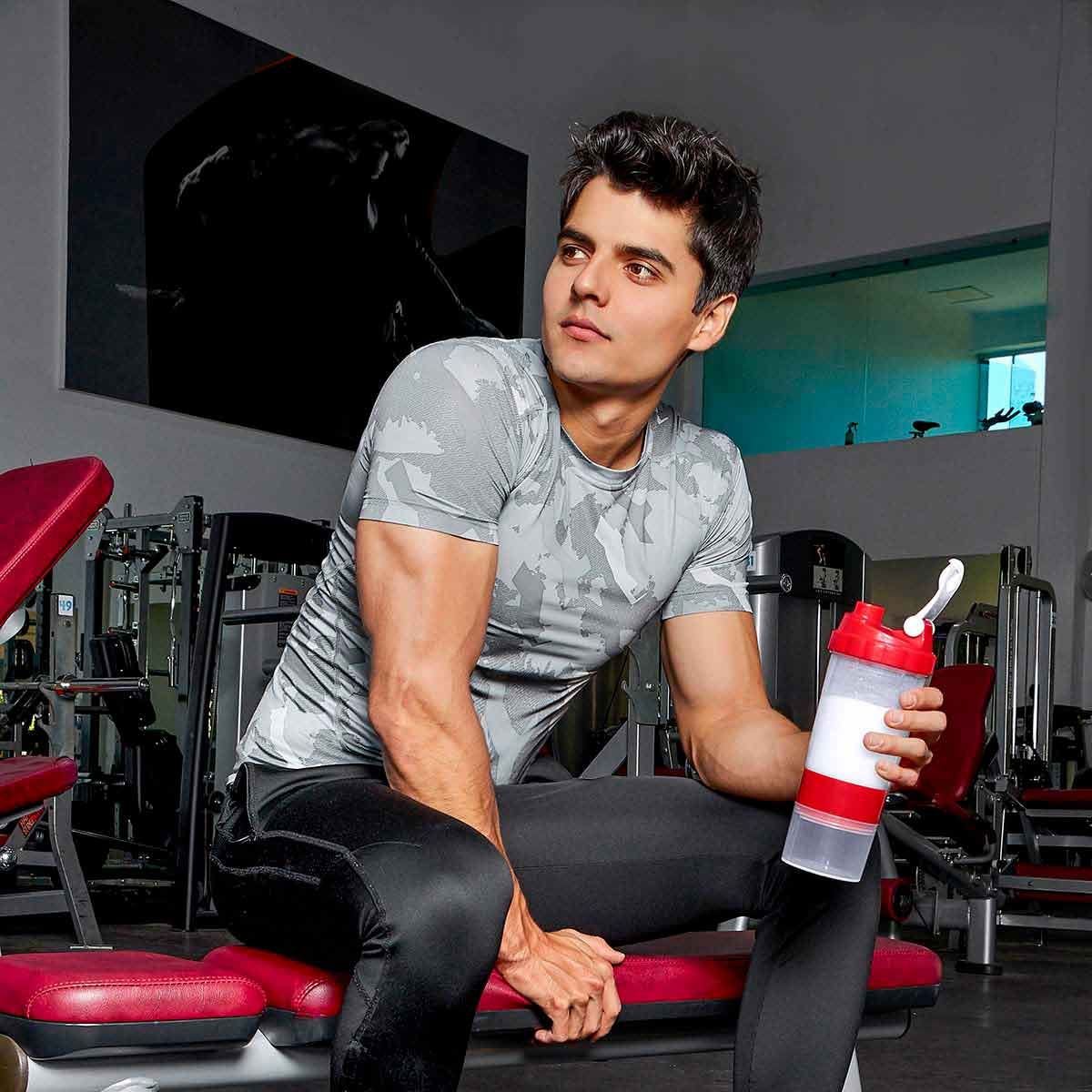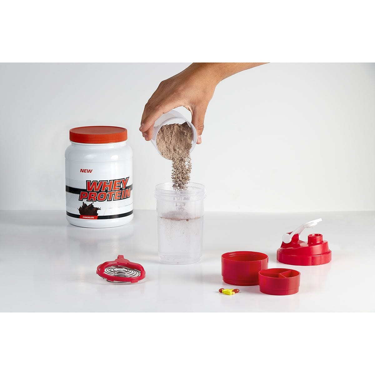 Incluye agitador. Cuenta con dos compartimentos especiales en la parte inferior y divisor de pastillas.
