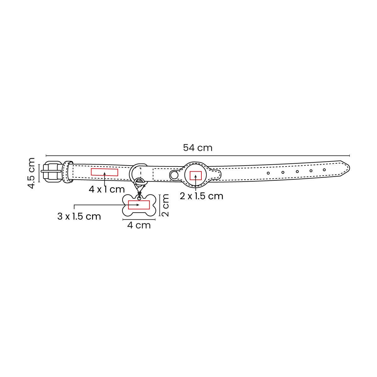 Medida: 54 x 4.5 cm Collar / 4 x 2.2 Placa