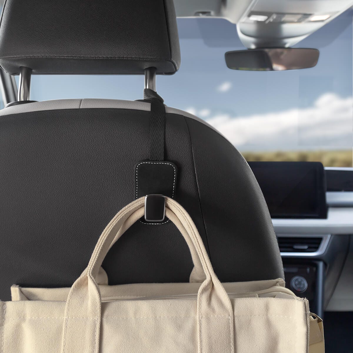 Gancho de metal perfecto para colgar bolsas, mochilas o accesorios. Su asa de poliéster permite montarlo y desmontarlo fácilmente, adaptándose al respaldo de cualquier asiento de coche. Incluye caja individual.