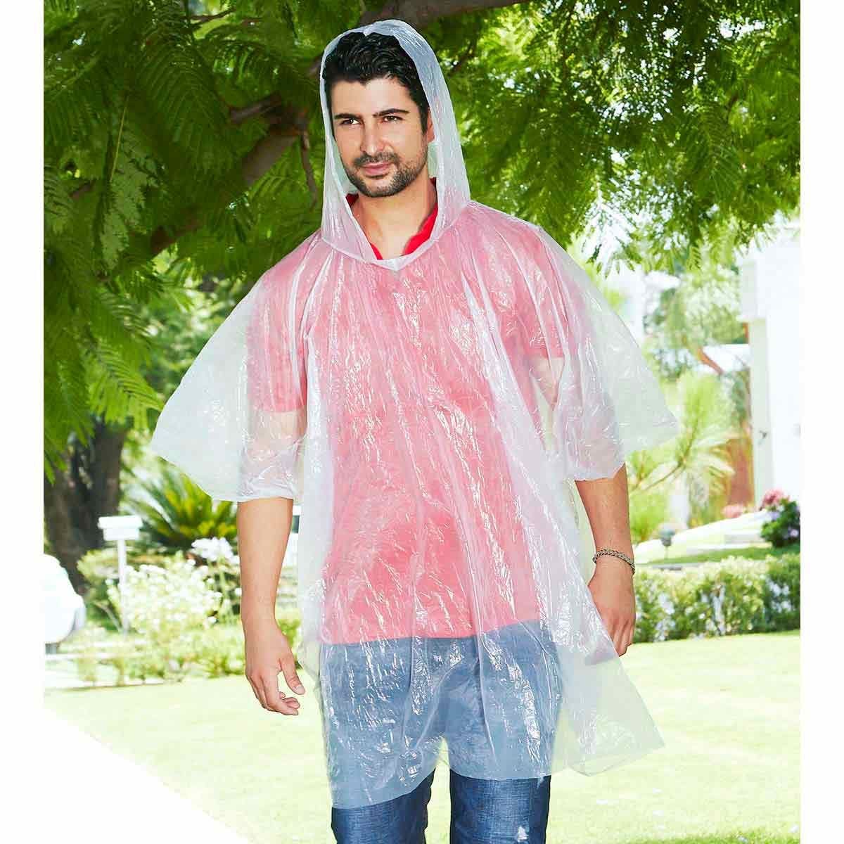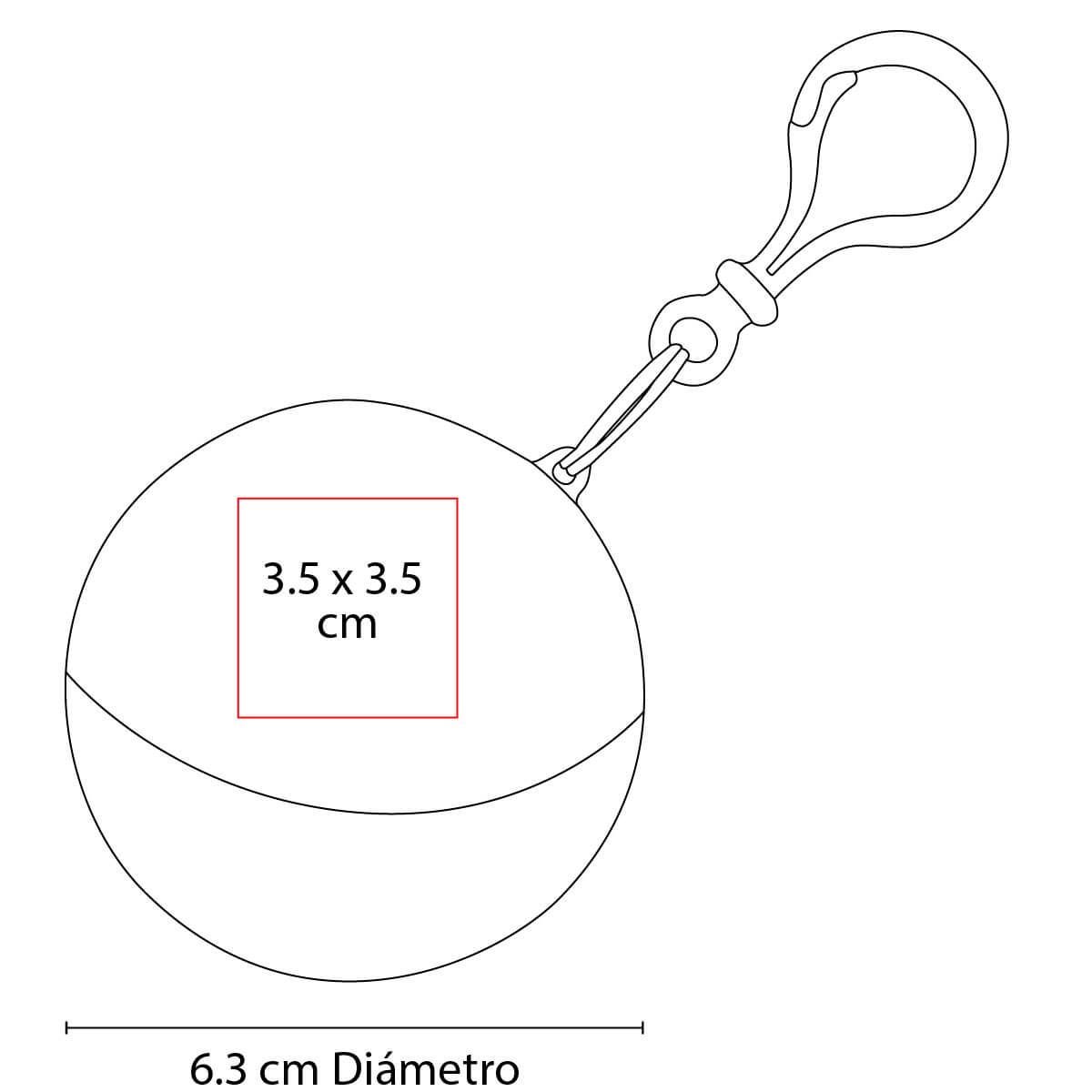 Incluye impermeable de plástico transparente. Estuche redondo con gancho de plástico.