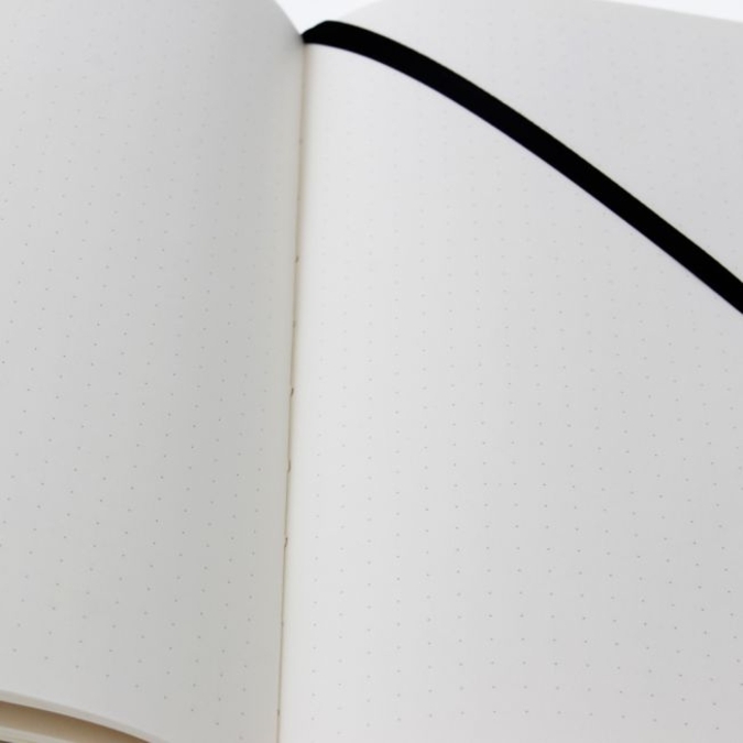 La libreta más versátil de la familia Skin. Sus hojas con puntos te permitirán usarla horizontal y verticalmente. Además de ser una guía para escribir de manera alineada, podrás dar estructura a tablas y diagramas, o hacer bocetos y dibujos sin ningún impedimento. Cuenta con 80 hojas punteadas sutilmente en papel óptico Silky proveniente de bosques sustentables. Suave Cubierta satinada. Con sobre porta documentos en contraportada. Separador de listón mismo color de cubierta. Cierre con elástico. Pegada y