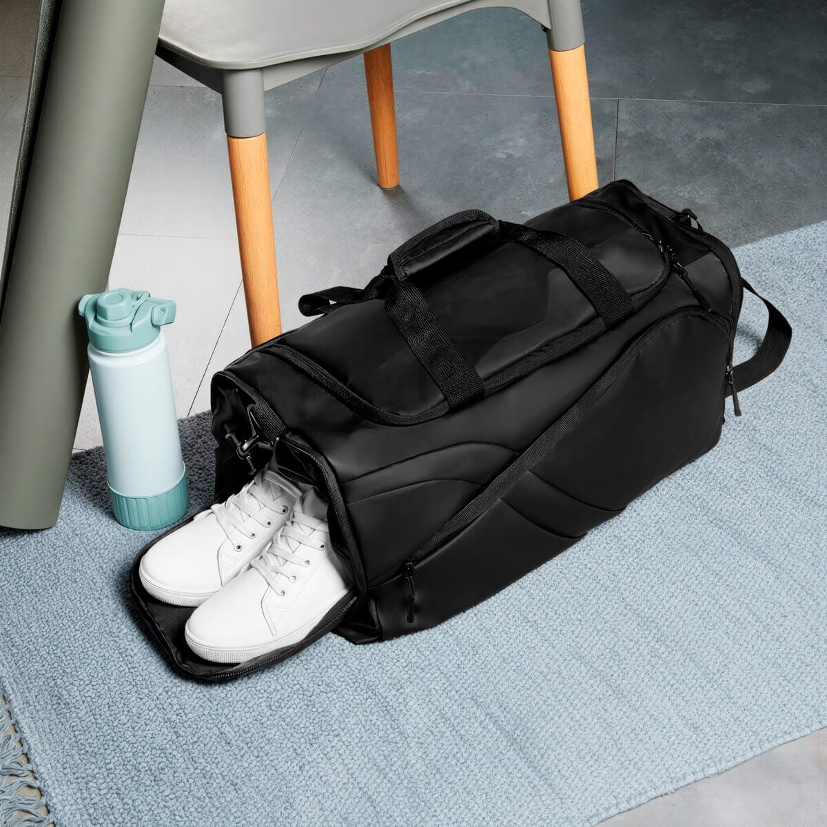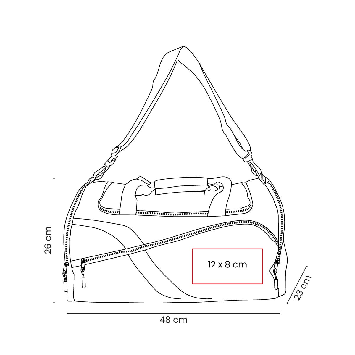 Maleta estilo deportivo. Compartimento principal con cierre. Bolsillo frontal con diseño asimétrico, que le otorga un toque distintivo de original diseño. Incluye bolsillo lateral con zapatera y un bolsillo lateral simple ideal para llevar pequeños objetos. Asas de mano para un fácil agarre y una práctica asa para hombro ajustable y removible, sujeta con broche de plástico para mayor seguridad. Esta maleta cuenta con el espacio y practicidad necesarios para llevar tus pertenencias de forma cómoda y segura a donde quiera que vayas, ideal para el gimnasio, viajes cortos o días cotidianos.
