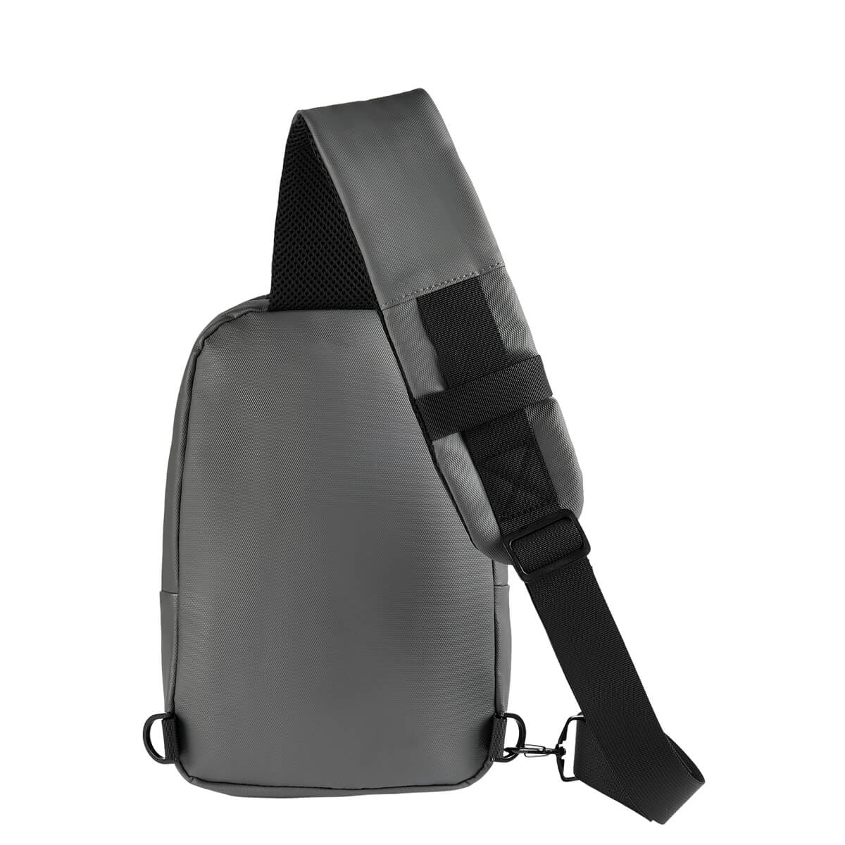 Mochila de viaje fabricada en material resistente a salpicaduras. Su diseño destaca por su parche de curpiel decorativo y por sus bolsas frontales con cierre horizontal. Cuenta con correa acolchada con broche de doble posición permite llevarla al hombro derecho o izquierdo con comodidad.