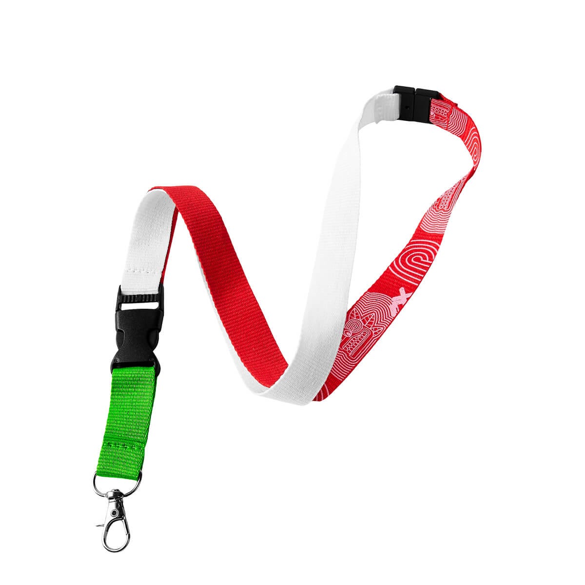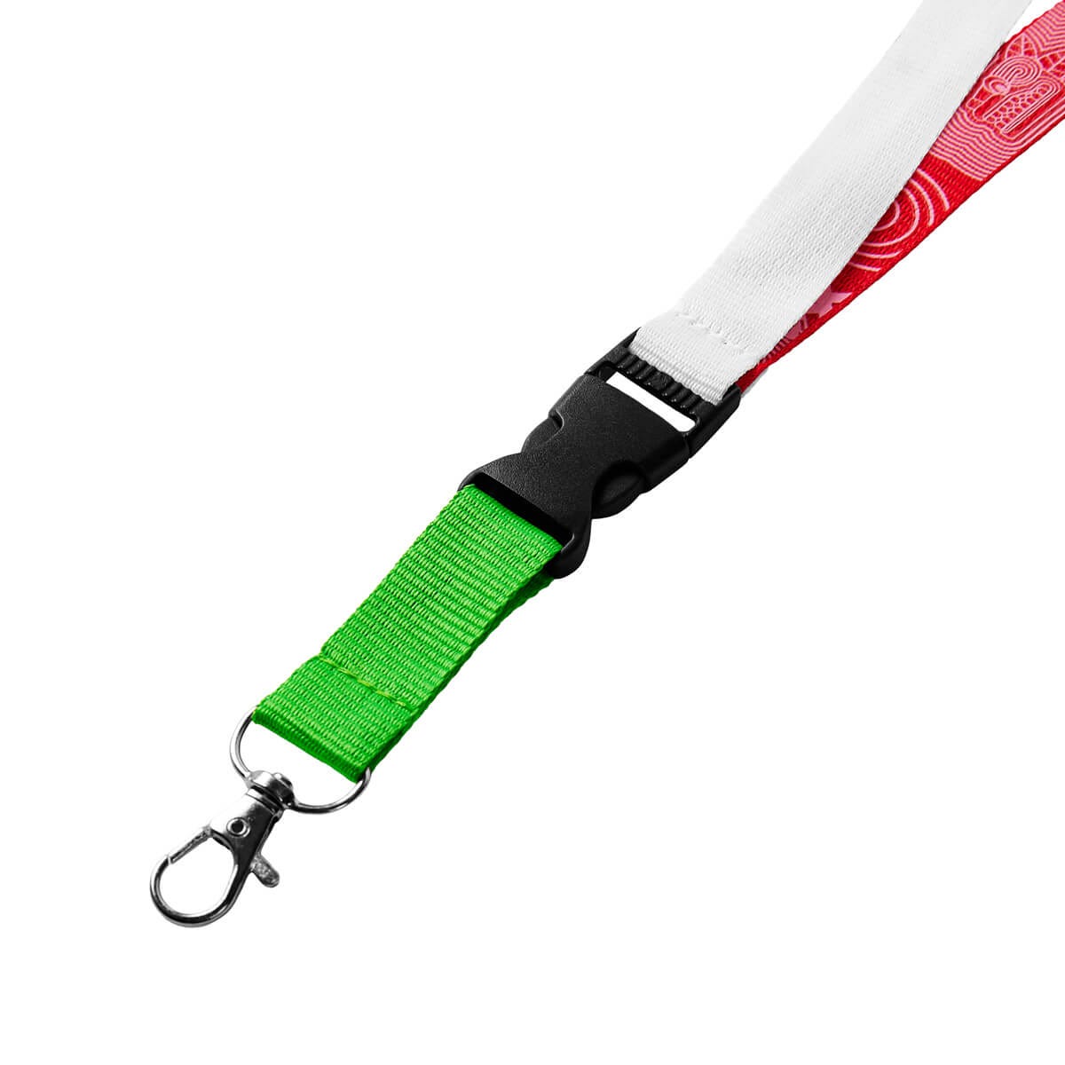 Portagafete tricolor con diseño inspirado en México. Incluye broche de seguridad, clip desmontable y gancho giratorio. Ideal para credenciales, llaves o tarjetas. Perfecto como souvenir o para eventos.