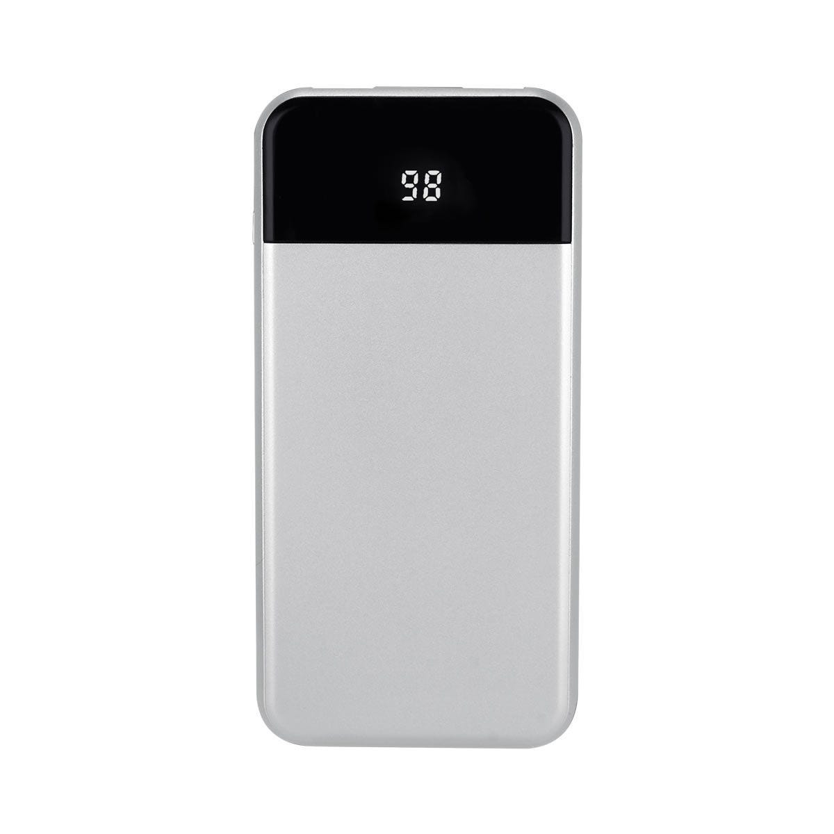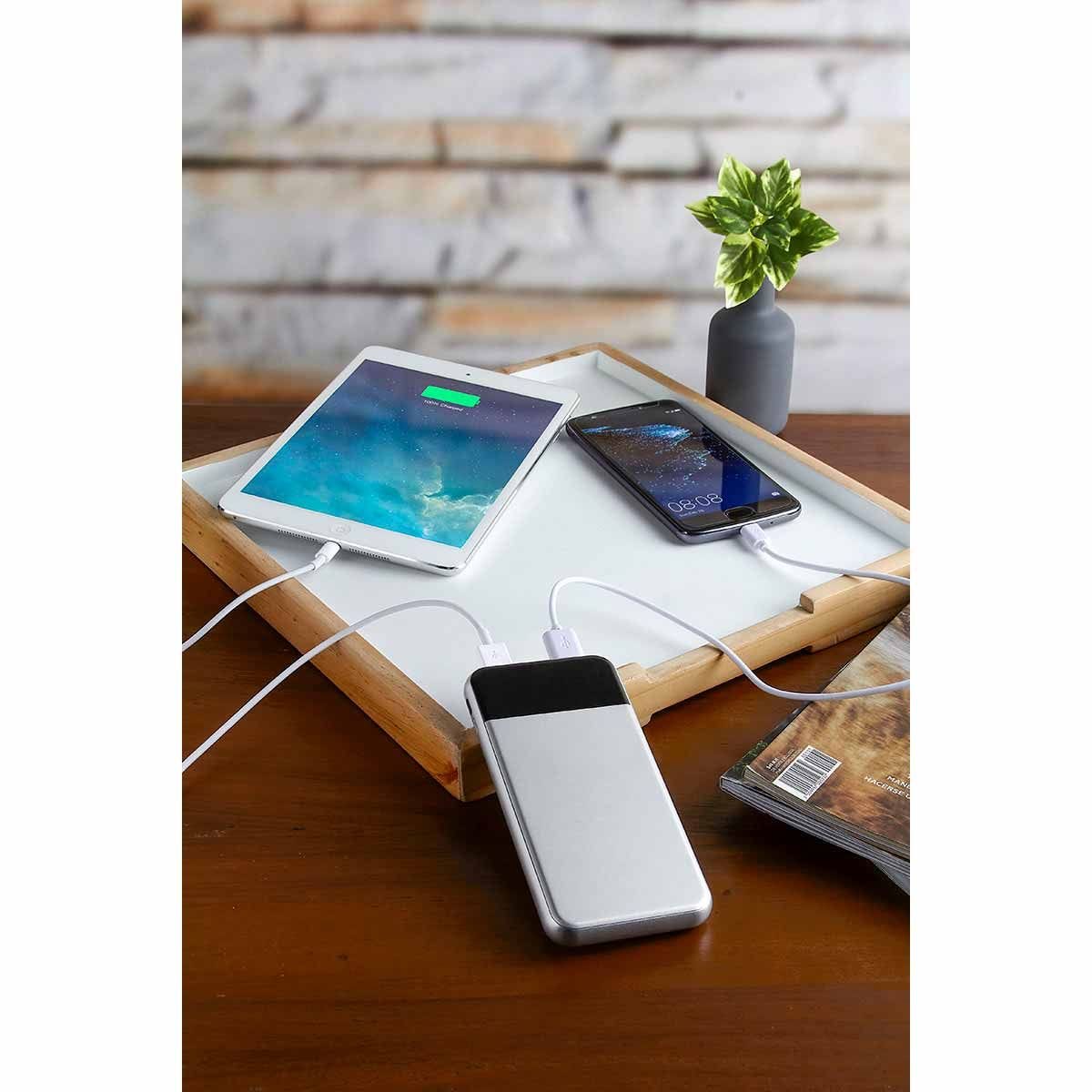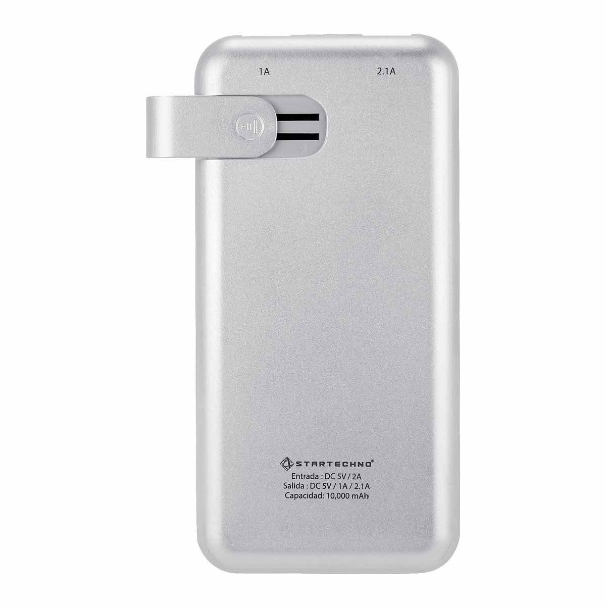 Batería auxiliar para smartphone, capacidad 10,000 mAh. Incluye cable cargador compatible con USB y micro USB. Display indicador de batería.